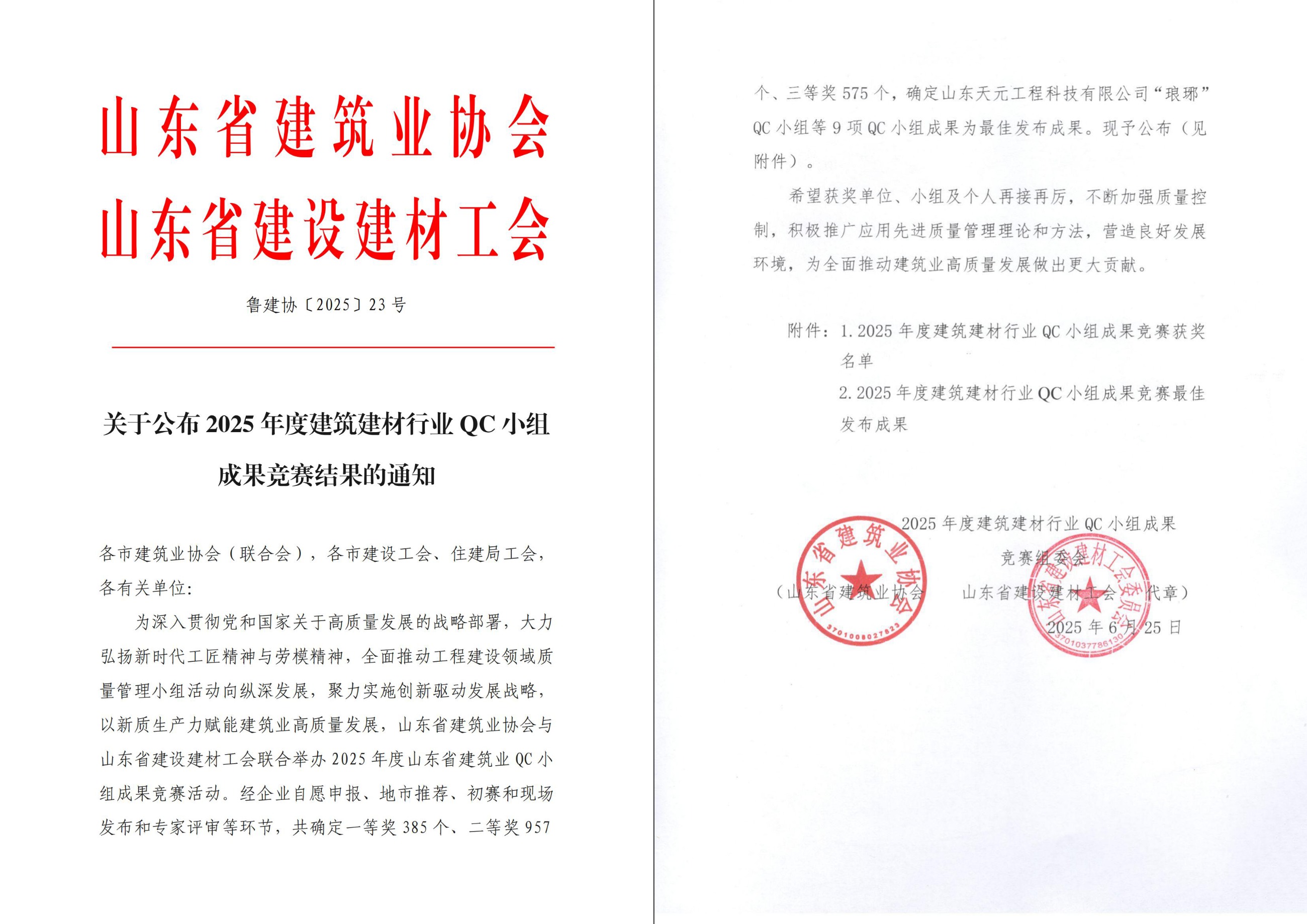 近日,由山東省建筑業(yè)協(xié)會(huì)和山東省建設(shè)工會(huì)聯(lián)合組織開(kāi)展的2025年度山東省建筑業(yè)QC小組成果競(jìng)賽活動(dòng)圓滿收關(guān)。經(jīng)企業(yè)自愿申報(bào)、地市推薦、初賽和現(xiàn)場(chǎng)發(fā)布,天華實(shí)業(yè)集團(tuán)強(qiáng)風(fēng)吹拂QC小組申報(bào)的《創(chuàng)新一種砌塊填充墻免開(kāi)槽管線敷設(shè)施工方法》QC小組成果從眾多成果中脫穎而出,榮獲2025年度山東省建筑業(yè)QC小組競(jìng)賽成果二等獎(jiǎng)。