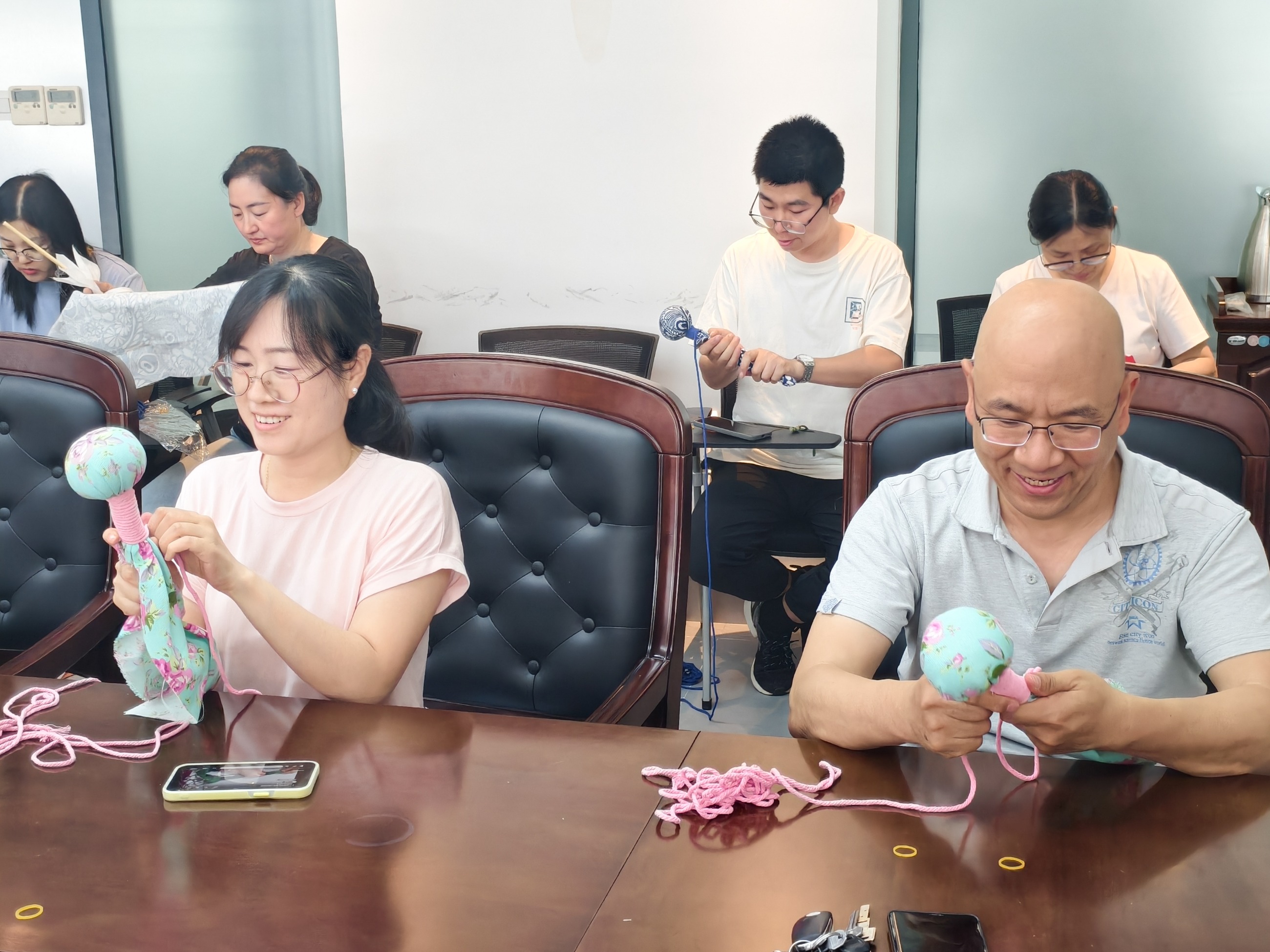 隨后,員工們來到會議室,大家親手制作藥香四溢的養(yǎng)生錘,體驗傳統(tǒng)手工藝的魅力。艾草錘由艾絨、決明子、丁香等中草藥混合包制而成,外包裝配以精美織布,散發(fā)淡淡清香,具有安神理氣、疏通經(jīng)絡(luò)、祛濕散寒、促進氣血循環(huán)、緩解肌肉疲勞等功效。